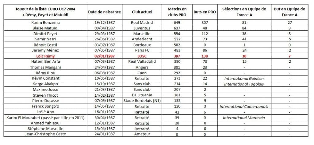 Le Petit Lillois a fait le point sur les 18 joueurs français présents à l’Euro U17 de 2004, en y ajoutant les trois précités.
