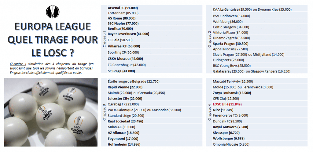 - 4 clubs sur 6, avec un meilleur coefficient que Lille, devraient basculer en Europa League.