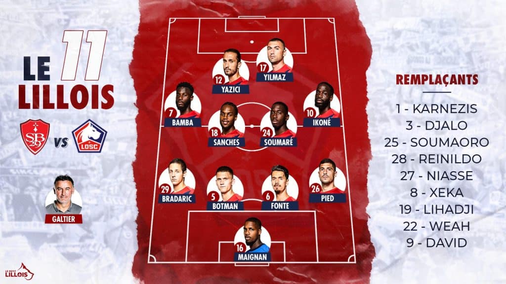 Christophe Galtier a dévoilé son onze de départ pour la rencontre Brest – Lille, prévue ce dimanche 8 novembre à 13h au stade Francis-Le-Blé et diffusée sur Téléfoot.