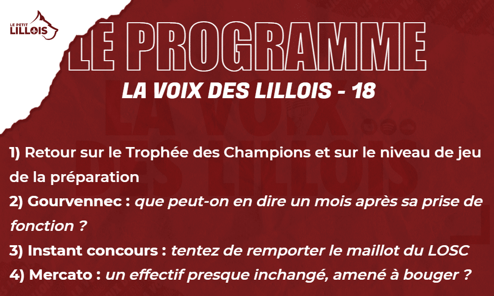 Chaque premier lundi du mois à 20h, c’est le traditionnel rendez-vous de La Voix des Lillois, une émission de radio 100% Lilloise. Tous les supporters du LOSC sont les bienvenus pour débattre avec les consultants du Petit Lillois durant tout le long de l’émission. Pour cela, rendez-vous dans la salle d’attente de notre Discord (cliquez-ici) où Pierre vous accueillera avec grand plaisir. Pour écouter l’émission d’une heure en direct, rendez-vous sur la plateforme Twitch (cliquez-ici).