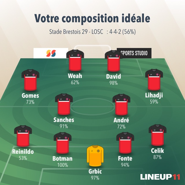 Avec un peu plus de 800 votants, voici la composition idéale des lecteurs du Petit Lillois pour la rencontre Stade Brestois 29 – LOSC.