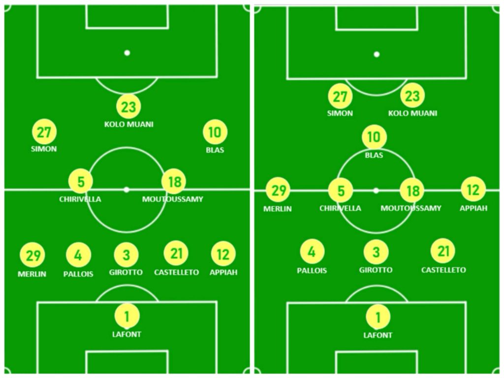 Cette saison, la réussite du club de Loire-Atlantique est d’abord le fruit d’une défense solide emmenée par le trio Castelleto – Girroto – Pallois ainsi que le gardien Alban Lafont, qui effectue sa meilleure saison sous les couleurs nantaises. Au poste de piston gauche, le jeune Quentin Merlin, formé au milieu, est la révélation nantaise de cette deuxième partie de saison. Doté d’une belle patte gauche, le Canari a répondu au défi physique de la Ligue 1 pour sa première saison. La formation nantaise s’est également distinguée par ses qualités de transition grâce à son attaque supersonique. Ludovic Blas (12 buts et 2 passes décisives) est à la baguette derrière Randal Kolo-Muani (11 buts et 3 passes décisives) qui est un véritable poison à la pointe de l’attaque. D’abord aligné milieu gauche dans un 4-4-2 puis attaquant, Moses Simon (3 buts et 7 passes décisives) a retrouvé sa tonicité et effectue également une grosse saison. Au milieu, Pedro Chirivella s’est révélé être un élément primordial du système nantais. L’Espagnol, doté d’un gros volume de jeu, montre d’énormes qualités à la récupération et gagne en précision à la relance par rapport à la saison passée, sa première en Ligue 1.