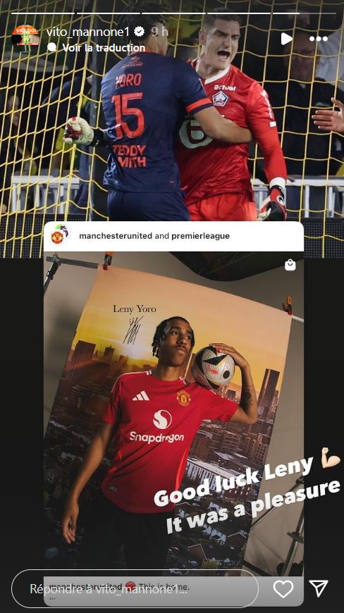 Les heures récemment écoulées ont signé la fin d’un premier feuilleton chez les Dogues, celui qui animait l’actualité du LOSC et de Leny Yoro. Ce jeudi, il a officiellement quitté son club formateur pour rejoindre Manchester United en Premier League. Un sacré bond commenté par les membres du vestiaire lillois. Proche du jeune défenseur central, mais aussi formé chez les Reds Devils, Angel Gomes ne pouvait pas rester insensible à une telle opération : « Mon petit frère, va montrer au monde. Je te souhaite le meilleur mon gars », a-t-il lancé conjointement sur ses différents réseaux sociaux. Accueilli par Rio Ferdinand, légende dans le Nord-Ouest de l’Angleterre, Leny Yoro peut compter sur le soutien de ses coéquipiers et amis pour poursuivre sa carrière avec sérénité. Outre le milieu de terrain britannique, Lucas Chevalier, Bafodé Diakité ou encore Vito Mannone lui ont adressé quelques mots. « Petit Leny devenu grand », il aura passé onze années chez les Dogues, dont deux avec l’équipe professionnelle, avant de s’envoler de ses propres ailes.