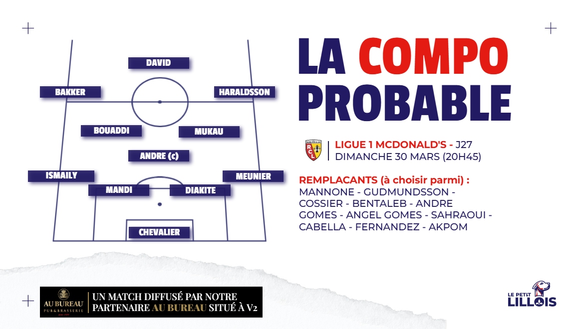Pour relancer la machine, qui s’enraillait avant la trêve, Bruno Genesio devrait renouer avec son milieu à trois, lui qui est privilégié depuis plusieurs semaines. Il pourrait être composé de Ngal’ayel Mukau, Benjamin André et Ayyoub Bouaddi. Ces derniers tenteront de bonifier les ballons récupérés par une défense dans laquelle prendra place Aïssa Mandi, qui devrait accompagner Thomas Meunier, Bafodé Diakité et Ismaily en l’absence d’Alexsandro, suspendu, devant Lucas Chevalier dans les cages. Enfin, la ligne offensive pourrait être composé des mêmes hommes qu’à Nantes avec Hakon Haraldsson, Jonathan David et Mitchel Bakker.