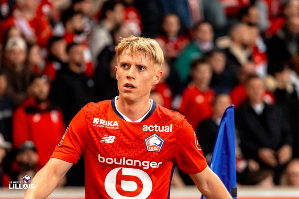 LOSC : Özer – Meunier, Ngoy, Alexsandro, Perraud – Mukau, André, Bouaddi – Haraldsson, Giroud, Correia
