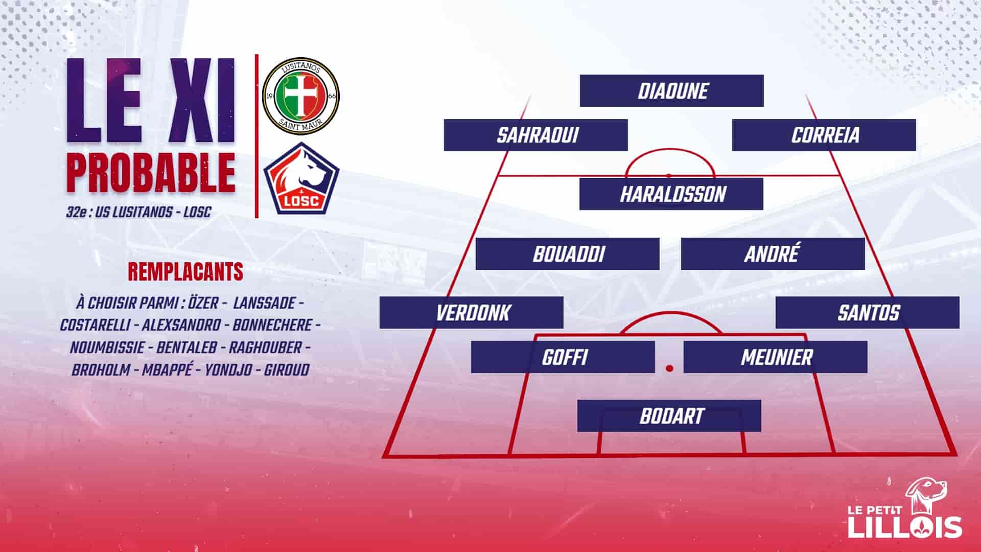 Tout ceci approche à grandes enjambées. Le moment est donc venu de vous proposer les compositions probables des deux équipes. Celle du LOSC a été concoctée par nos soins, tandis que le onze de départ de l’US Lusitanos Saint-Maur a été composé par la rédaction du journal L’Équipe.