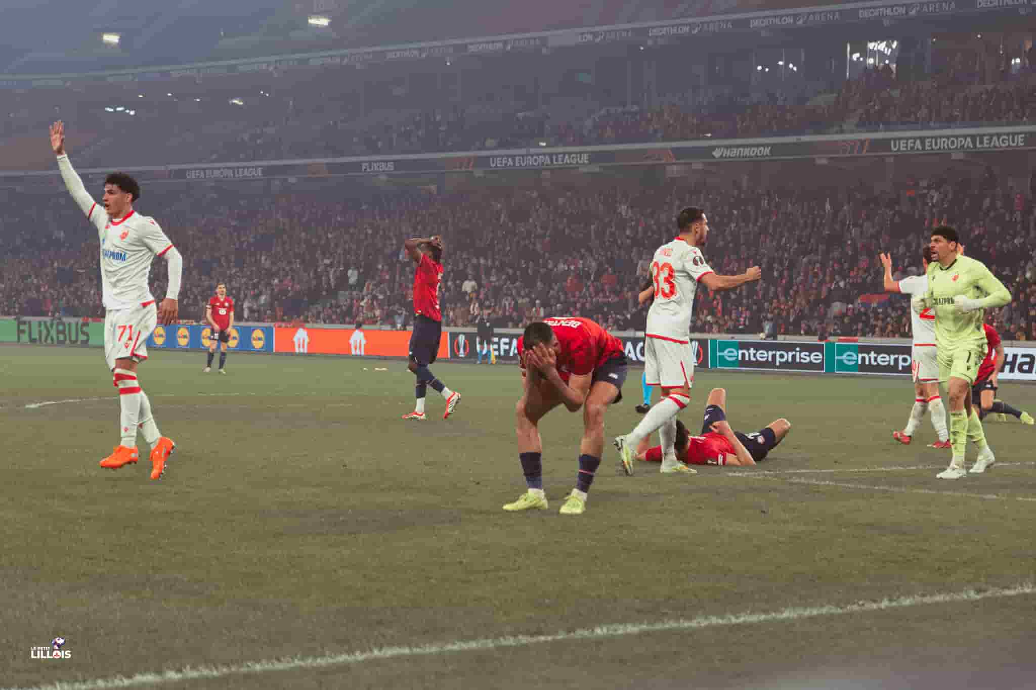 Malgré les ambitions affichées en début de saison en Europa League, les Dogues n’ont absolument rien montré ce jeudi dans leur duel (barrage aller) avec l’Étoile Rouge de Belgrade. Ils n’ont cadré qu’une seule frappe (Romain Perraud, 80′) sur 7 petites tentatives, aucune franche. De l’autre côté du terrain, Berke Özer a été héroïque face à Marko Arnautovic (67′, 87′) après avoir vu ses filets trembler (45+1′) sur un corner.